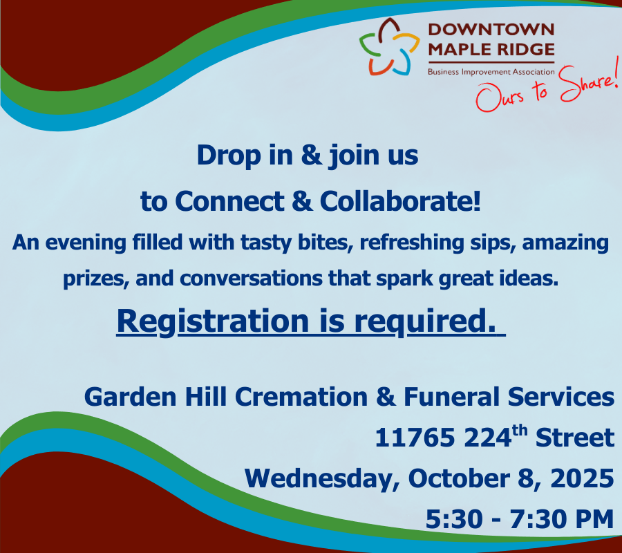Please join us, our host Garden Hill Cremation and Funeral Services, and fellow Downtown Maple Ridge business owners, managers, and staff for an evening of connection and collaboration.