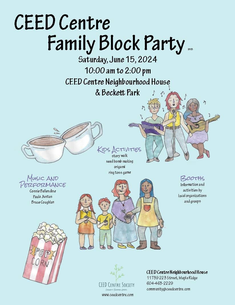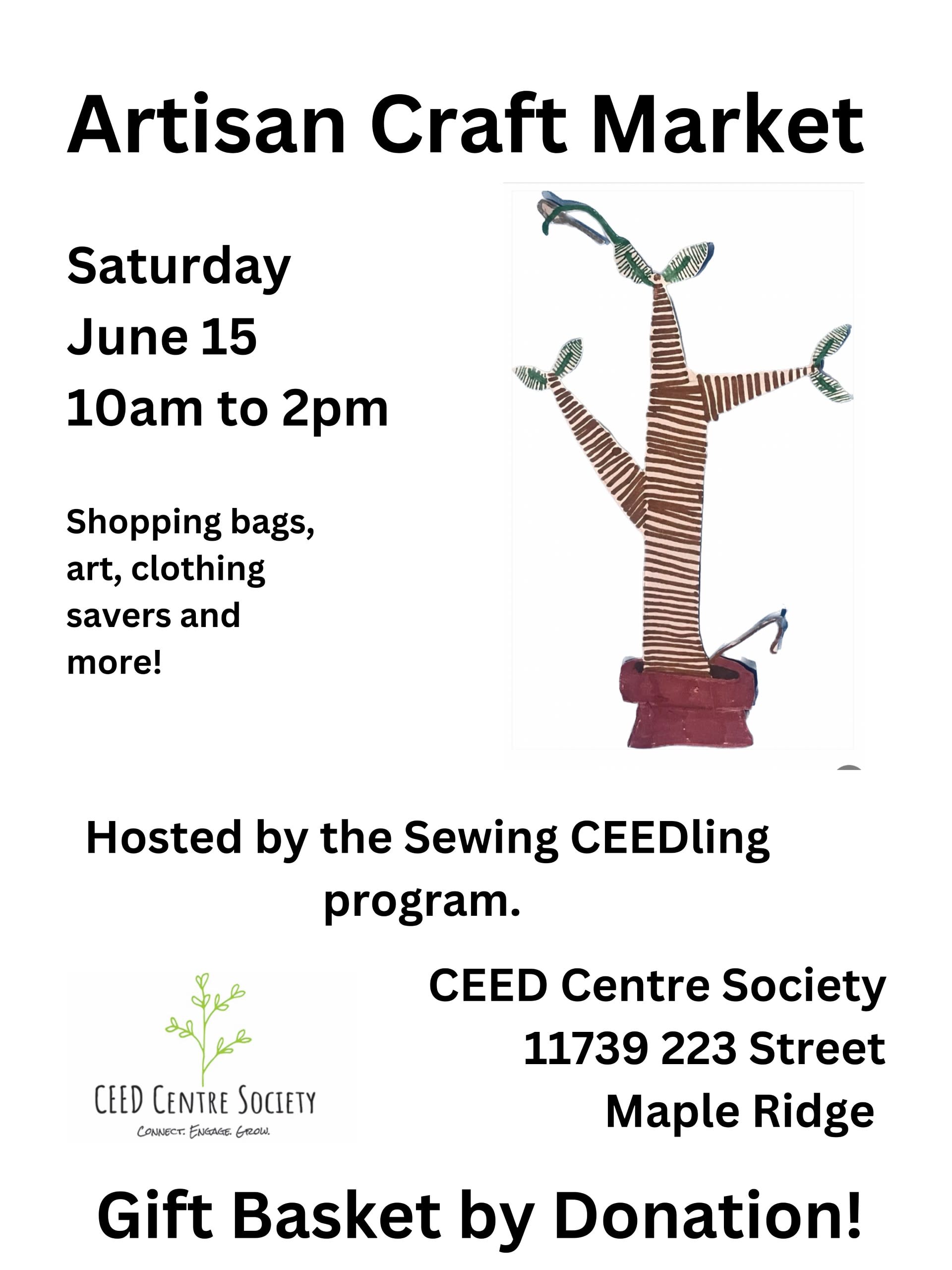 Visit the CEED Centre & Beckett Park to enjoy live music, kids' activities, community booths, and more! An artisan craft market will also be on site, hosted by the Sewing CEEDling program. Check out the event posters for more info!