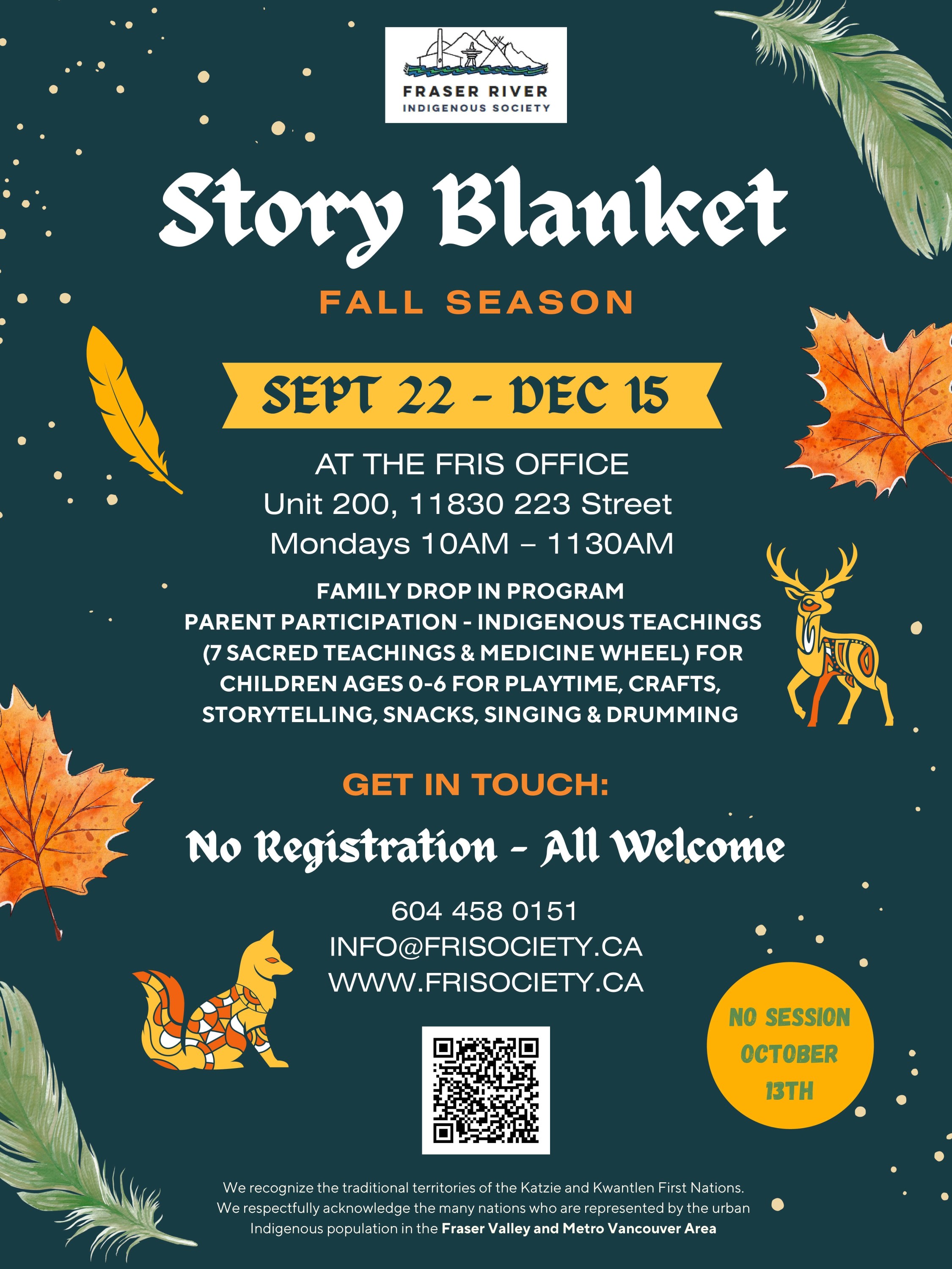 Parent participation - Indigenous teachings (7 sacred teachings and medicine wheel) for children ages 0-6 for playtime, crafts, storytelling, snacks, singing & drumming