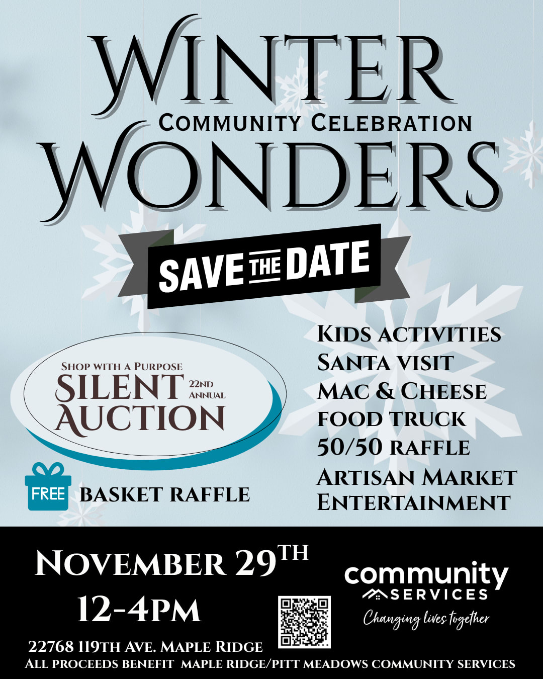 We’re thrilled to invite you to be part of something special — Winter Wonders 2025, our signature fundraising event happening on Saturday, November 29th, at our main office in Maple Ridge. This family-friendly event will feature a silent auction, a local small business market, live performances, kids’ activities, and more.