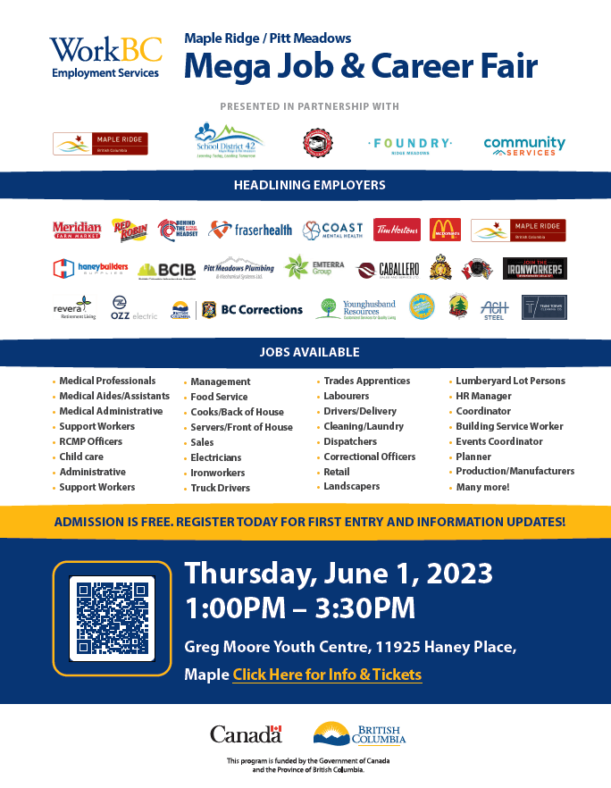 The WorkBC Employment service of Maple Ridge / Pitt Meadows is hosting a Mega Job & Career Fair.