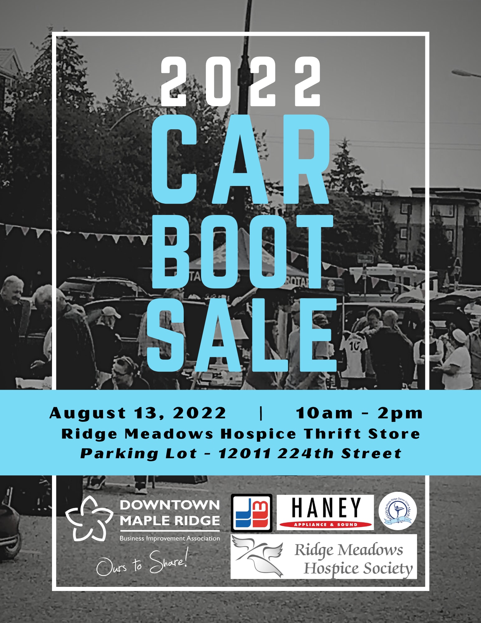 The wildly popular Car Boot Sale at Ridge Meadows Hospice Thrift Store is back! August 13th from 10am to 2pm - 32 Vendors with everything from previously loved items, to small based home businesses, crafts and more!