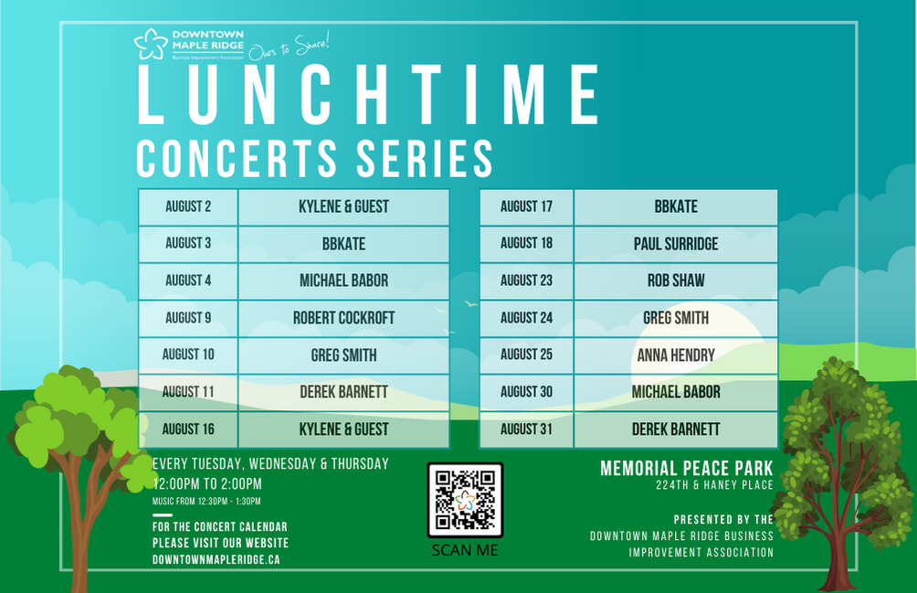 Come enjoy your lunchtime in Memorial Peace Park! Our Lunchtime Concert Series is back every Tuesday, Wednesday & Thursday from 12:00pm - 2:00pm with music from 12:30 to 1:30!Images