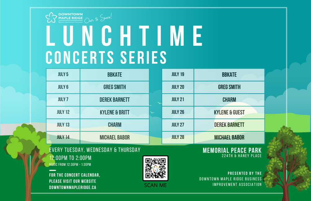 Come enjoy your lunchtime in Memorial Peace Park! Our Lunchtime Concert Series is back every Tuesday, Wednesday & Thursday from 12:00pm - 2:00pm with music from 12:30 to 1:30!Images