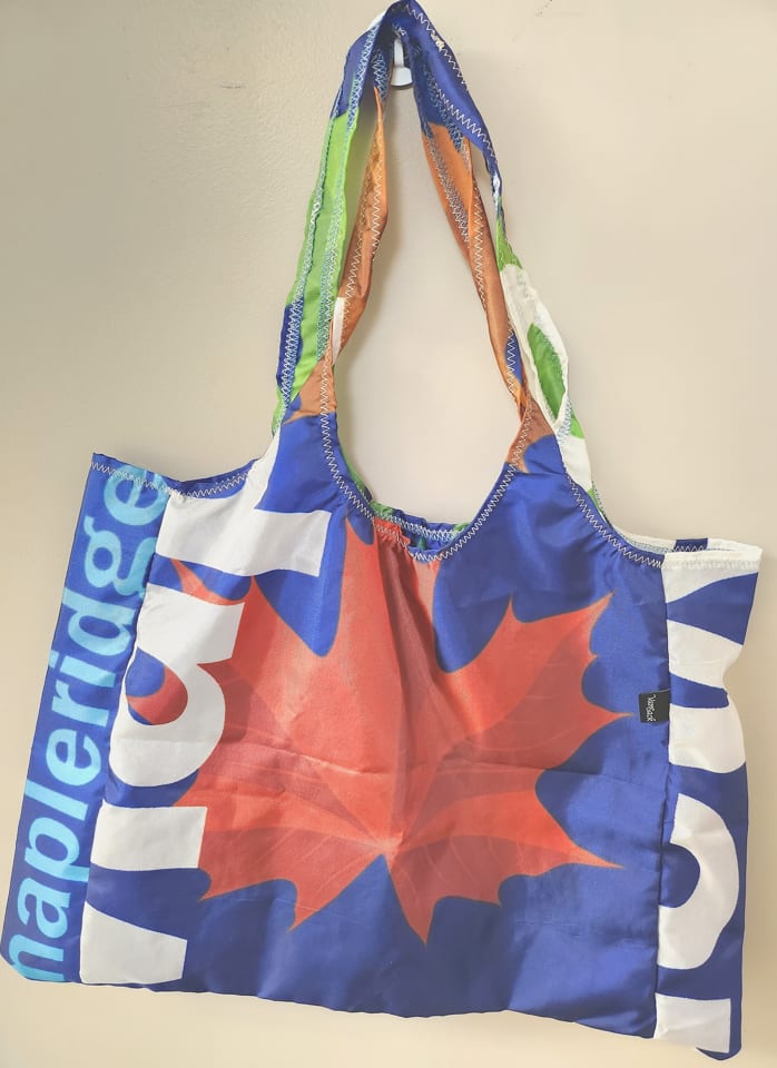 Through a partnership with the City of Maple Ridge, the CEED Centre Society, and the Ridge Meadows Association for Community Living (RMACL), the Downtown Maple Ridge Business Improvement Association launched a program to give retired street banners a second life and help shoppers use less plastic.